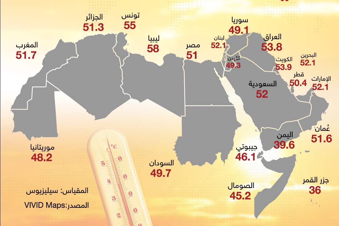 من المتوقع أن تشهد عدة مناطق في الخليج العربي وشمال إفريقيا، وخاصة المناطق الصحراوية وشبه الصحراوية مثل موريتانيا والمملكة العربية السعودية، موجات حر تتجاوز 45 درجة مئوية، كما حصل خلال شهر ماي المنصرم، وفق خرائط حرارية نشرتها صحيفة “نيويورك تايمز”.