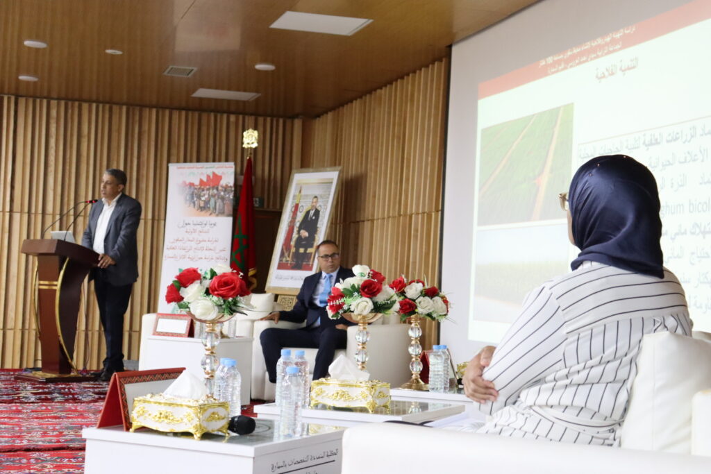 افتتح اللقاء بآيات بينات من الذكر الحكيم ثم ترديد النشيد الوطني، قبل أن تنطلق العروض التقنية للمديرية الإقليمية للفلاحة، التي قدمت نتائج دراسة مشروع تهيئة مدار سقوي بعين النخلة على مساحة تقدر بـ100 هكتار بجماعة سيدي أحمد لعروصي، بهدف تطوير زراعات علفية حديثة، وترشيد استغلال الموارد المائية الجوفية، وتعزيز الإنتاج الحيواني في إطار مقاربة ترابية مندمجة. وقد أشاد المتدخلون خلال العرض بالرؤية الاستشرافية لعامل الإقليم، وبالدعم الذي يقدمه لمشاريع تثمين الموارد الفلاحية والرعوية التي تعتبر من أهم مكونات الاقتصاد المحلي.