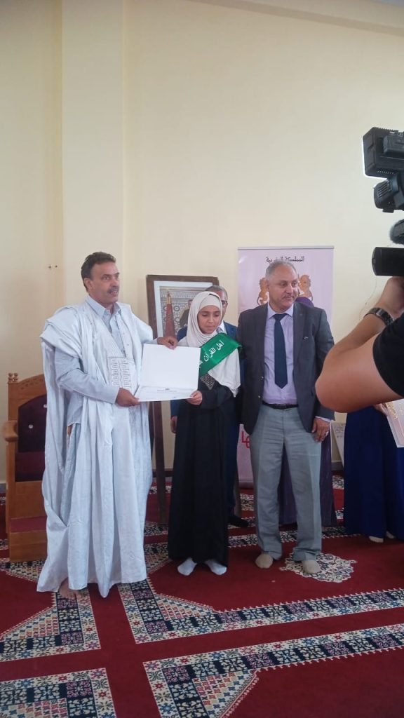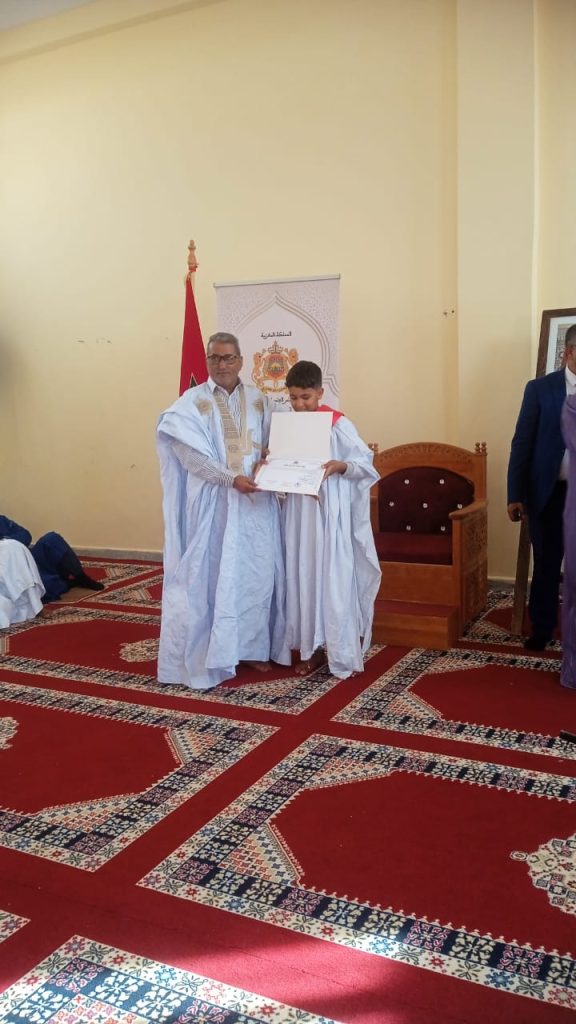 شهدت مدينة السمارة اليوم الثلاثاء 26 نونبر 2024 حدثا استثنائيا تمثل في حفل تتويج 22 طالبا من طلبة مدرسة ورش للتعليم العتيق بشهادات الحفظ تكريما لجهودهم في حفظ 40 حزبا من القرآن الكريم وإتقان علومه. وقد حضر الحفل عامل إقليم السمارة السيد إبراهيم بوتيملات مرفوقا بعدد من الشخصيات المدنية والعسكرية وشيوخ وأعيان القبائل الصحراوية إضافة إلى فعاليات المجتمع المدني.