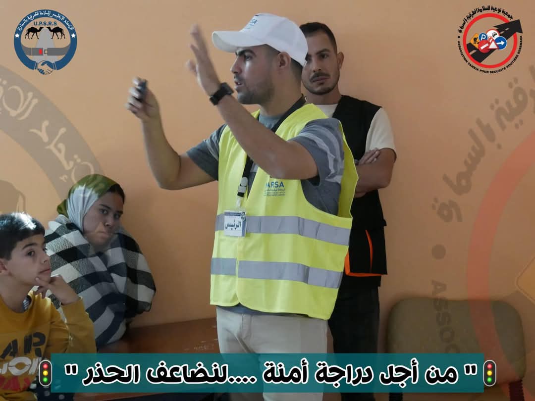 تحت شعار “من أجل دراجة آمنة… لنضاعف الحذر”، شهد النشاط تقديم عرض نظري تحسيسي من طرف رئيس الجمعية السيد الحسين هيلة الذي ركز على تقديم شروحات مبسطة للأطفال حول كيفية التعامل الصحيح مع الفضاء الطرقي وأهمية الحذر أثناء استخدام الطريق خاصة بالنسبة لمستعملي الدراجات. كما تطرق إلى الأخطار المرتبطة بالاستعمال غير السليم للطريق مع توجيه نصائح حول العبور الآمن للطريق واحترام قوانين السير.