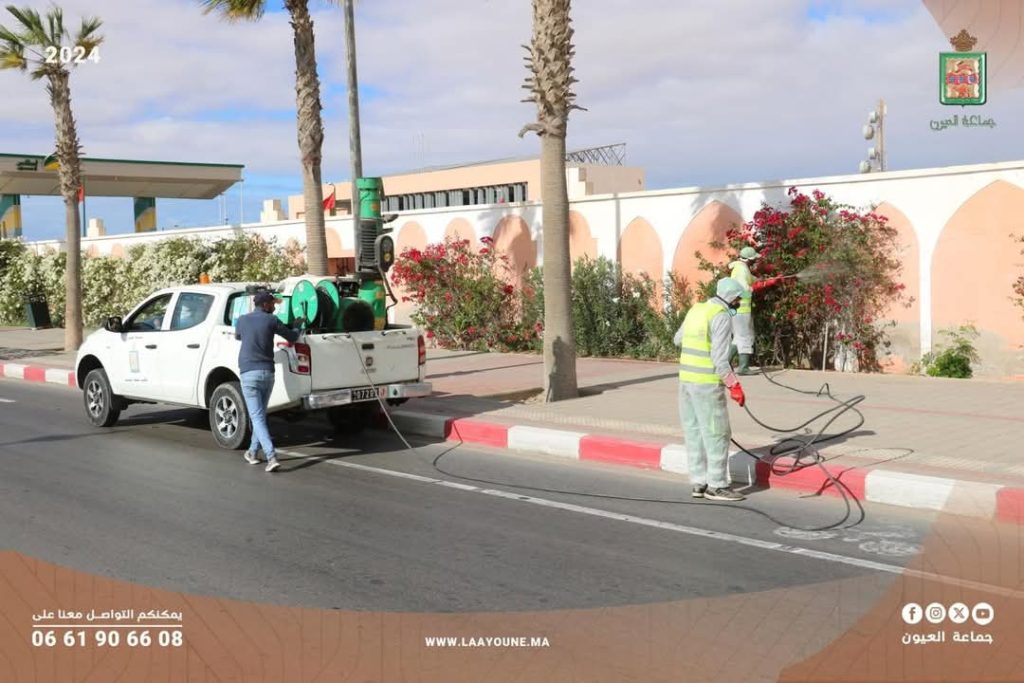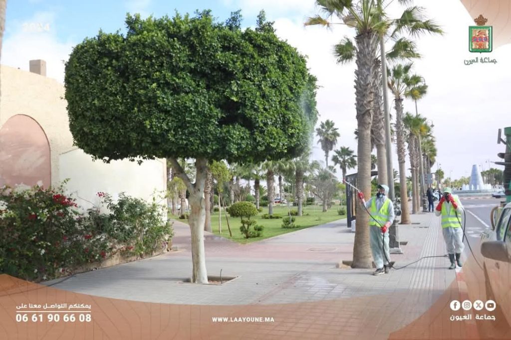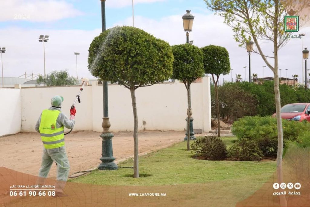 بتوجيه مباشر من السيد رئيس مجلس جماعة العيون، أطلق قسم الأشغال والشؤون التقنية حملة واسعة لمعالجة النباتات في الحدائق والمساحات الخضراء بجميع أنحاء المدينة. تأتي هذه المبادرة ضمن استراتيجية الجماعة الرامية إلى تحسين جودة الغطاء النباتي وتعزيز المظهر البيئي العام، بما يخدم أهداف التنمية المستدامة ويُحافظ على جمالية المدينة.