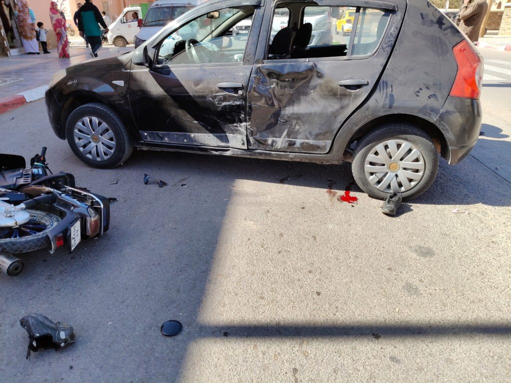 وقع قبل قليل حادث سير خطير أمام مقهى ديانا بشارع الحسن الثاني بمدينة السمارة ، حيث اصطدمت سيارة بدراجة نارية، مما أدى إلى إصابة شاب بجروح بليغة. وتم نقله على وجه السرعة إلى المستشفى الإقليمي بالسمارة لتلقي العلاجات الضرورية.