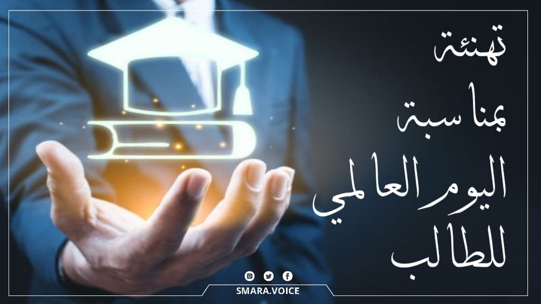 بمناسبة اليوم الطالب العالمي، نتقدم في صوت السمارة بأحر التهاني لكل الطلاب الطموحين والمثابرين.. أنتم عماد المجتمع وأمل المستقبل، ونثمن جهودكم في سعيكم لاكتساب المعرفة وتحقيق النجاح.