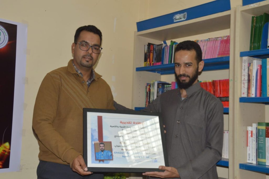 تكريم الأستاذ المقرر ” عبد الله عبيداتي ” بشهادة تقديرية عرفانا وتقديرا لجهوده في إنجاح هذه المحاضرة من موقع التقرير جزاه الله خير الجزاء.