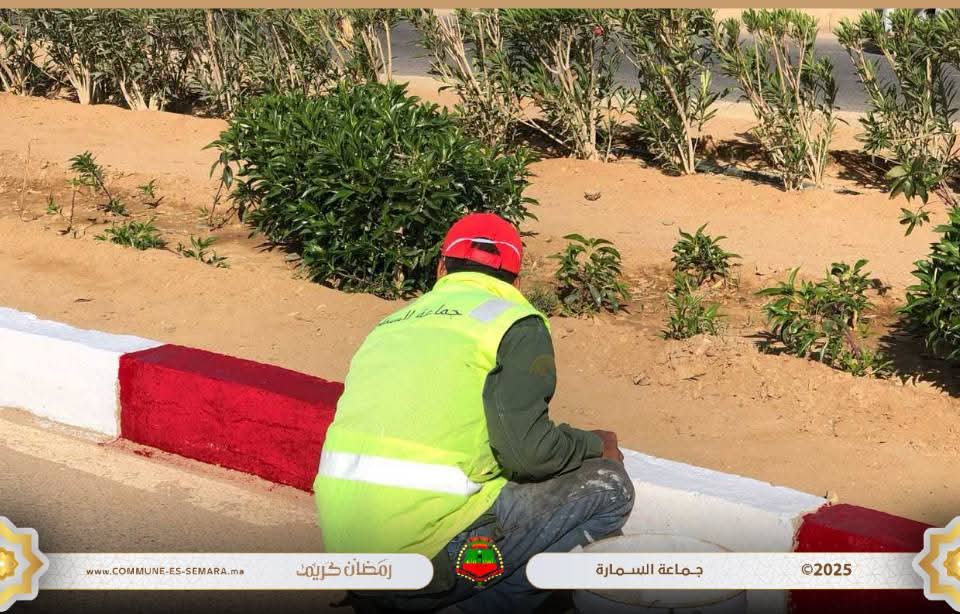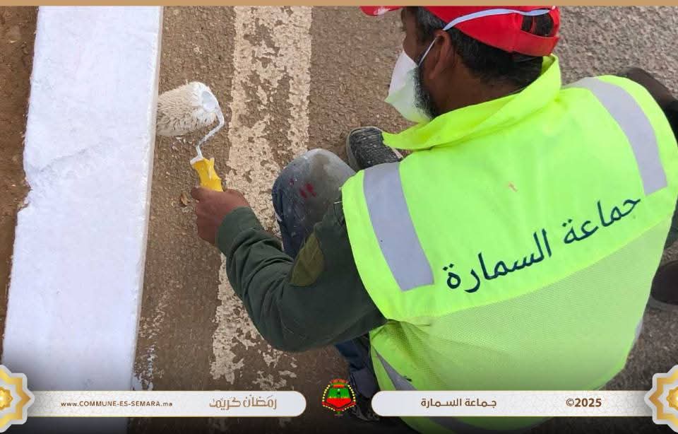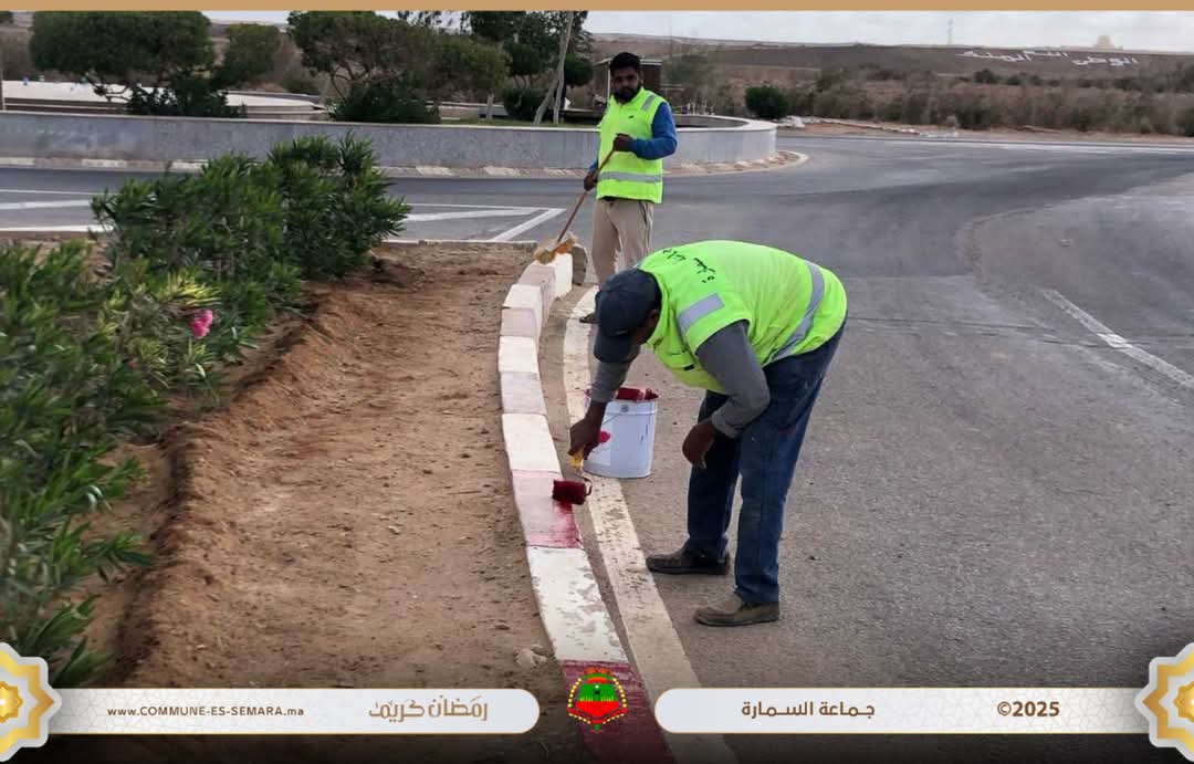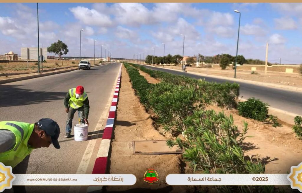 تنفيذا لتعليمات السيد مولاي إبراهيم شريف رئيس جماعة السمارة، تتواصل أشغال صباغة الأرصفة بالمدخل الغربي للمدينة، وذلك في إطار برنامج تأهيل المدينة وتحسين المشهد الحضري.
