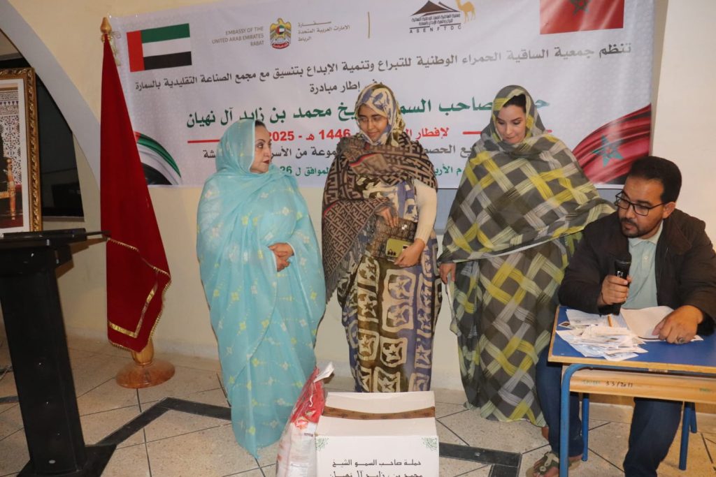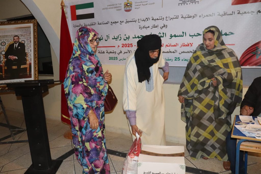 في إطار جهودها الإنسانية المتواصلة لدعم الفئات الهشة نظمت جمعية الساقية الحمراء الوطنية للتبراع والتنمية والإبداع، وبالتنسيق مع مجمع الصناعة التقليدية بالسمارة، مبادرة خيرية متميزة اليوم الأربعاء 25 رمضان 1446 هـ، الموافق لـ 26 مارس 2025، وذلك ضمن حملة صاحب السمو الشيخ محمد بن زايد آل نهيان.