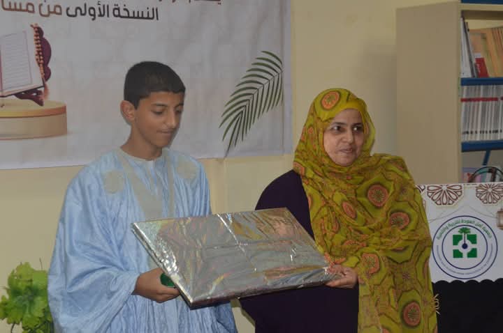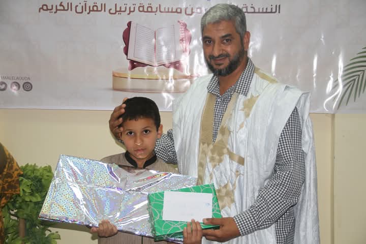 🥈تكريم الحاصلة على المرتبة الثانية المشاركة “صفية الرگيبي” تسلمه الأستاذ عياد بوتوميت نيابة عنها من يد الأستاذبابا بيبا.
