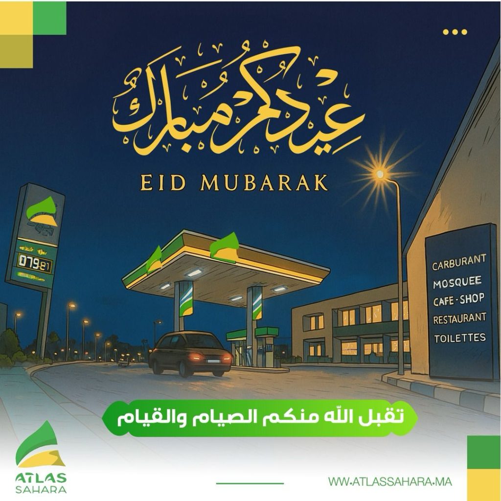 بمناسبة حلول عيد الفطر المبارك تتقدم شركة أطلس صحراء بأحر التهاني وأطيب التمنيات إلى زبائنها الكرام..