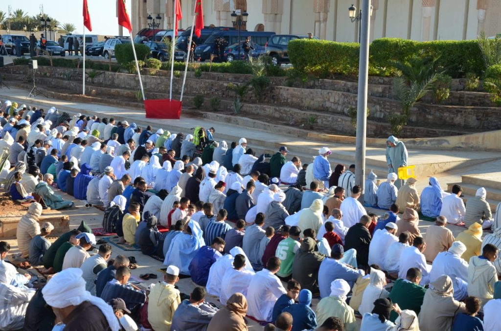 و بساحة المسجد الكبير أقيمت صلاة العيد بحضور السيد إبراهيم بوتوميلات عامل الإقليم، مرفوقا بقائد الحامية العسكرية بالسمارة، ونائب رئيس المجلس الاقليمي للسمارة محمد بيدة ورئيس جماعة السمارة المهندس مولاي ابراهيم شريف، ومندوب الشؤون الإسلامية ورئيس المجلس العلمي المحلي بالسمارة ورؤساء الجماعات المحلية والمنتخبين وشيوخ وأعيان القبائل الصحراوية، بالإضافة إلى رؤساء المصالح الأمنية و رجال السلطة و رؤساء المصالح الإدارية بالإقليم. و جموع من المواطنات و المواطنين الذين توافدوا بكثافة لتأدية صلاة العيد و الإنصات للخطبة الدينية الخاصة بهذه المناسبة.