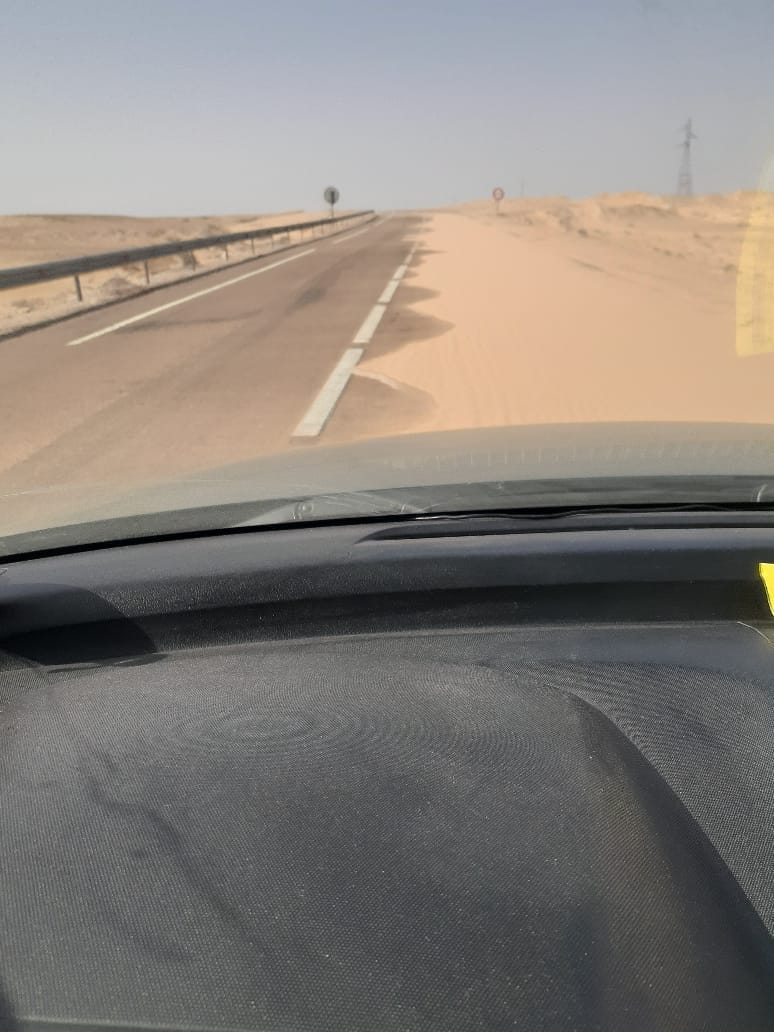 على الطريق الرابطة بين السمارة والعيون وبالضبط في المعطف الأول بعد عبور وادي عنگة، ثمة رمال تزحف وتنامت الظاهرة على حساب الطريق الشيء الذي جعلها ضيقة للغاية وخطرة على مستعملي الطريق.