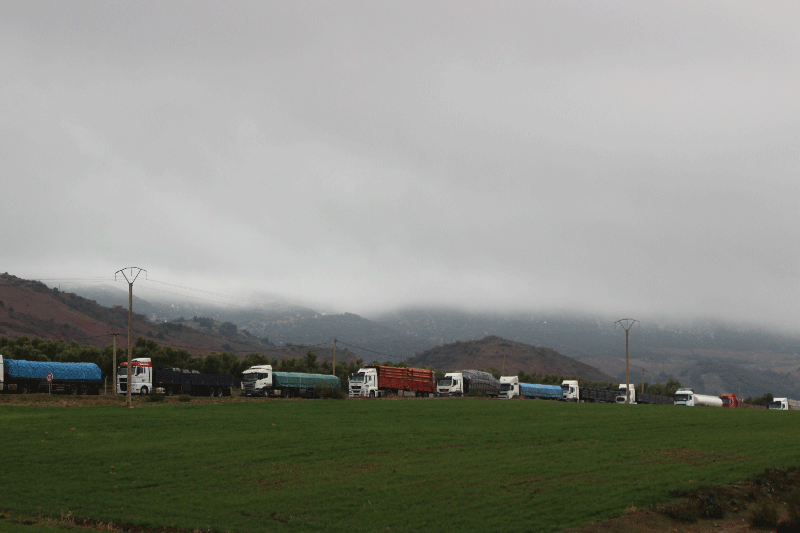 وفي إقليم خنيفرة، توقفت العشرات من العربات المقطورة في ملتقى الطرق المؤدية إلى تغسالين وخنيفرة، في انتظار السماح لها بالمرور، علما أن منطقة تيمدغاس كانت سجلت زوال اليوم السبت تساقطات ثلجية كثيفة.