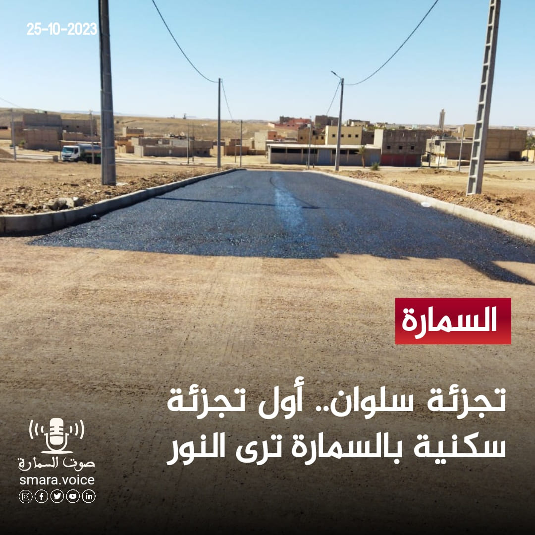 دشنت اليوم تجزئة سلوان بالعاصمة العلمية للأقاليم الجنوبية السمارة مرحلة مفصلية في هذا المشروع ذي البعد الاجتماعي، حيث يتم اليوم تكسية التجزئة، هذه العملية التي تعد آخر مرحلة في سبيل التسليم النهائي للمشروع.
