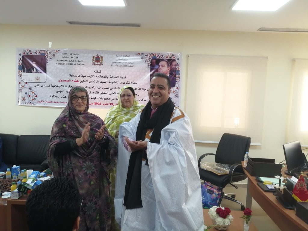 في حفل بهيج نظمته المنظومة القضائية اليوم الخميس بمكتب الرئاسة بالمحكمة الإبتدائية بالسمارة، تم تكريم الأستاذ: هشام الصحراوي الذي تم نقله الى مدينة سيدي ايفني.