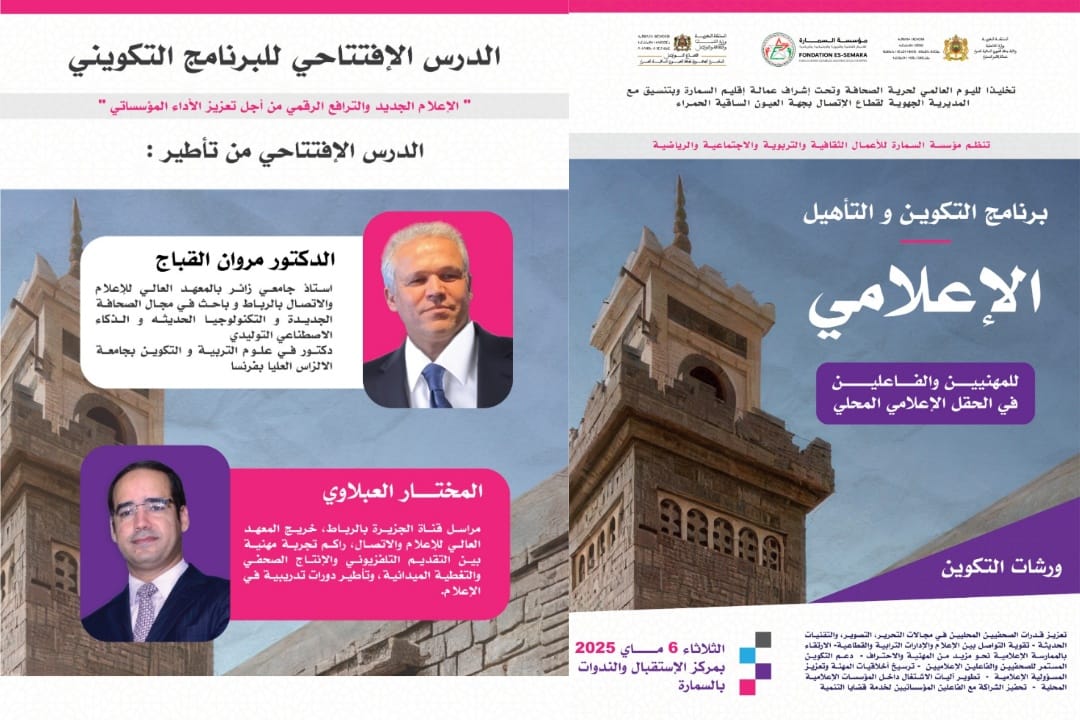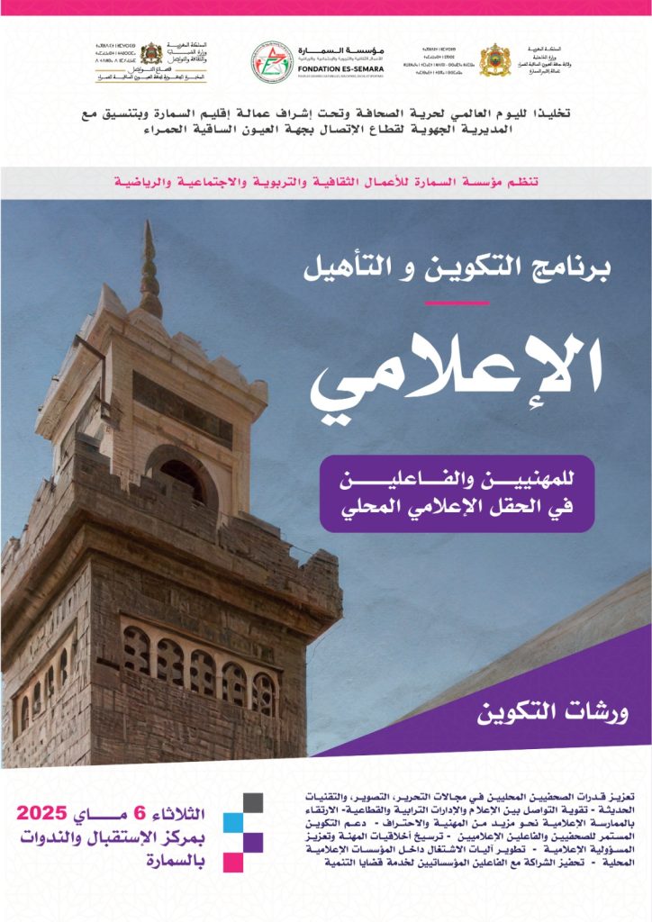 في سابقة نوعية على مستوى إقليم السمارة، وتنزيلاً لرهانات التحديث الإعلامي والتأهيل المهني، تحتضن مدينة السمارة، يوم الثلاثاء 6 ماي 2025، بمركز الاستقبال والندوات، فعاليات أول برنامج تكويني وتأهيلي مخصص لفائدة الإعلاميين والفاعلين في الحقل الإعلامي المحلي، وذلك احتفاءً باليوم العالمي لحرية الصحافة.