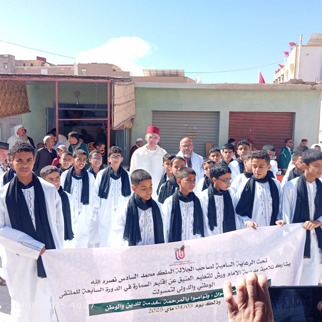 شارك تلامذة مدرسة الإمام ورش للتعليم العتيق بالسمارة في فعاليات الدورة السابعة للملتقى الوطني والدولي السنوي لتمسولت المنظم يومي 3 و4 ماي 2025 بجماعة تافراوتن بإقليم تارودانت، من طرف جمعية المساعي الحميدة بتمسولت، تحت شعار: “وتواصوا بالمرحمة.. خدمة للدين والوطن”، وبتنظيم مشترك مع مؤسسات وطنية وشركاء محليين، وتحت الرعاية السامية لصاحب الجلالة الملك محمد السادس نصره الله.