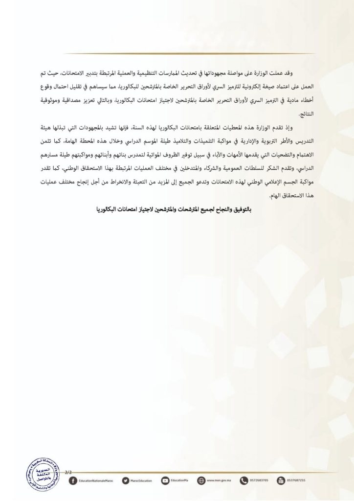 ويأتي هذا الاستحقاق الوطني في سياق جهود إصلاح منظومة التقييم والامتحانات، والتي تسعى إلى تعزيز مصداقية شهادة البكالوريا وضمان شفافيتها.