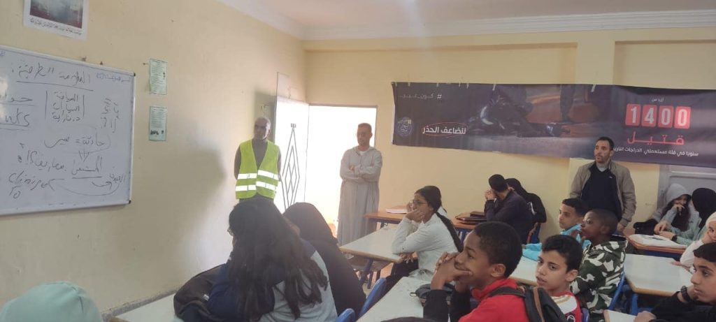 ندوة اليوم الأولى حملت عنوان المؤسسة التعليمية جسر لنشر ثقافة السلامة الطرقية من تأطير الضابط الممتاز سعيد بوصلوح الذي تناول بشكل تفصيلي ضرورة الوعي بالاخطار الناجمة عن حوادث السير وسبل الحماية كما تطرق للمخالفات والعقوبات الزجرية التي وضعها المشرع للحد من هذه الظاهرة مع تذكير التلاميذ بضرورة الالتزام بالقوانين التي وضعت بالأساس لحماية المواطن بالدرجة الأولى كما نبه للمخالفات التي يرتكبها أصحاب الدراجات النارية والهوائية لأنها الأكثر استعمالا من طرف التلاميذ بعدها تناول الكلمة رئيس جمعية الكرامة للسلامة الطرقية الذي ذكر هو الآخر بضرورة احترام قانون السير مع اعطائه ارشادات عملية لفائدة التلاميذ من أجل اكتساب وعي مجتمعي يساهم في ترسيخ ثقافة قانونية تساعد في ربط الحقوق بالواجبات.