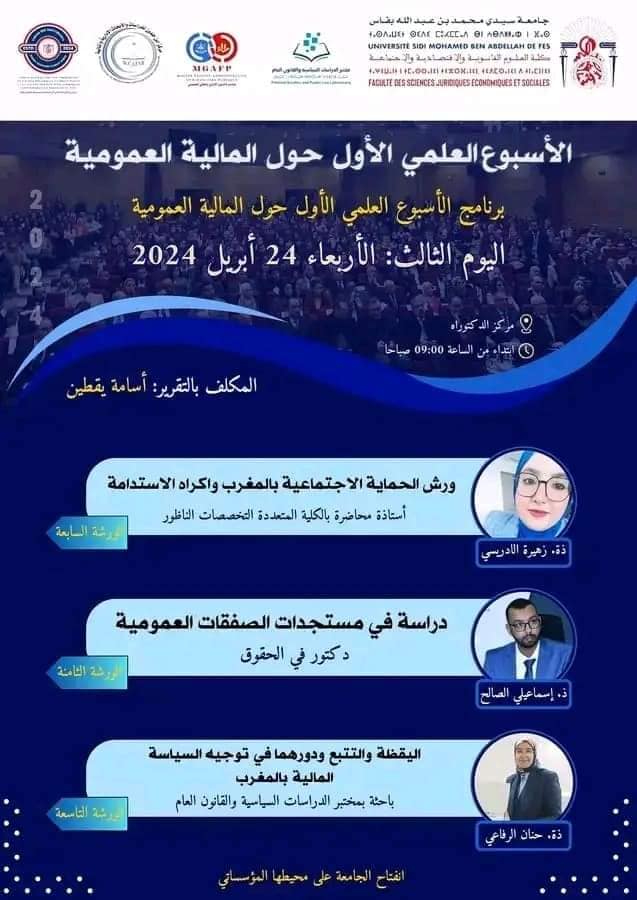شارك الدكتور صالح اسماعيلي، أحد أبرز الأطر الأكاديمية المنحدرة من مدينة السمارة، في فعاليات اليوم الثالث من الأسبوع العالمي الأول حول المالية العمومية، الذي تنظمه كلية العلوم القانونية والاقتصادية والاجتماعية التابعة لجامعة سيدي محمد بن عبد الله بفاس.