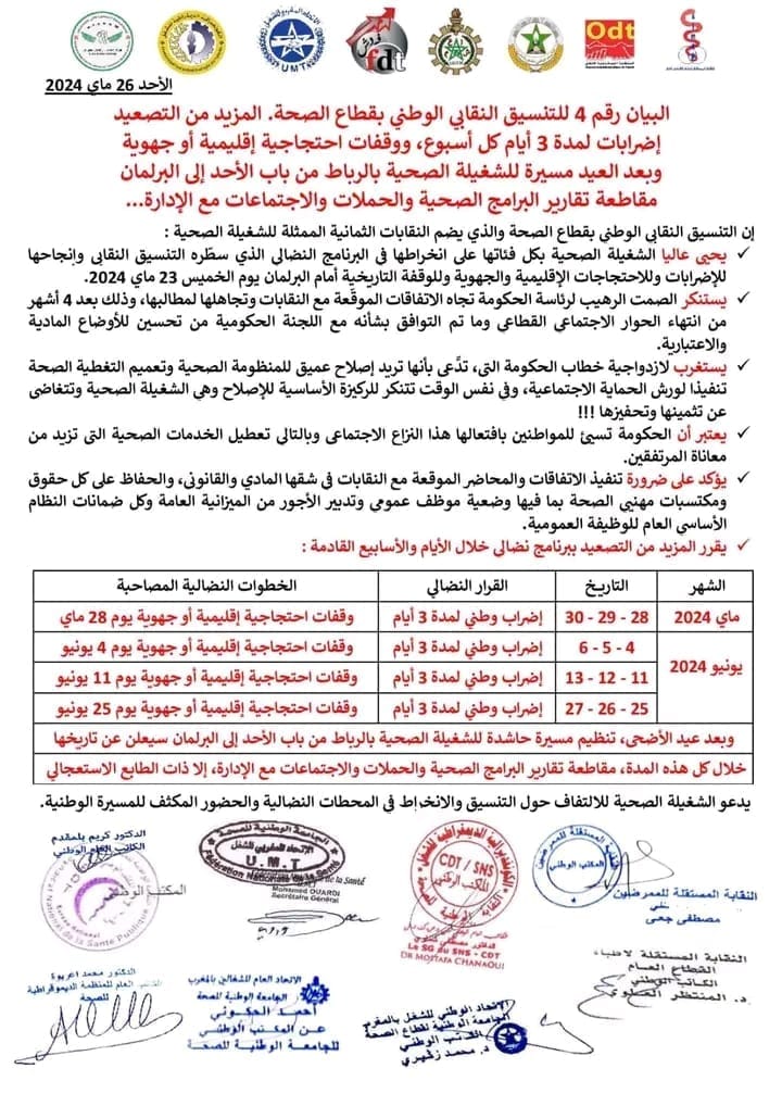 التنسيق النقابي الوطني بقطاع الصحة يصعد من الإضرابات..! الأخبارصـحـة آخر تحديث يونيو 22, 2025 شارك شارك