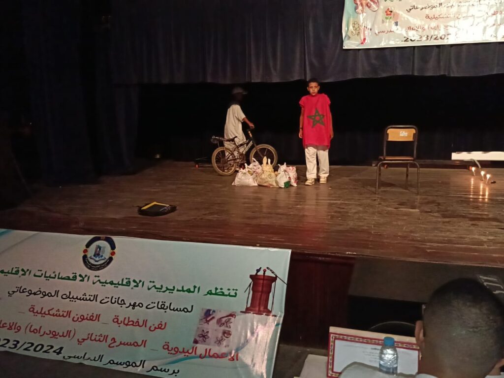 تماشيا مع أهداف خارطة الطريق 2022_2026 واطارها الاجرائي لسنتي 2023و2024 وخاصة البرنامج الرابع المتعلق بالأنشطة الموازية واستنادا الى الإطار المرجعي لمسابقات التشبيك الموضوعاتي نظمت المديرية الإقليمية لوزارة التربية الوطنية والتعليم الأولي والرياضة بالسمارة وبتوجيهات من السيد المدير الإقليمي الاقصائيات الإقليمية لمسابقات المسرح الثنائي ومسابقة الاعلام المدرسي يومي 15و 16 ابريل 2024 بدار الثقافة الشيخ سيدي أحمد الرگيبي