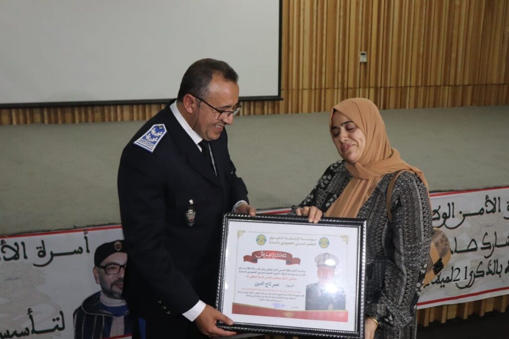 احتفلت أسرة الأمن الوطني بالسمارة صباح يوم الخميس 16 ماي 2024، بمركز الاستقبال بالذكرى 68 لتأسيسها، بحضور عامل إقليم السمارة وقائد الحامية العسكرية بالإقليم، ورئيس المجلس الجماعي للسمارة، والمنتخبون وشيوخ وأعيان القبائل، وباقي موظفي المصالح الإدارية، وفعاليات المجتمع المدني.فبعد الإستعراض الذي قدمه رجال الأمن للحضور تمت تحية العلم والتوجه الى قاعة العروض بالمركز حيث تم الترحيب بالحضور الكريم وافتتاح الحفل المخلد لليوم التأسيس بآيات من الذكر الحكيم تلته كلمة للسيد بوعزة الغربي العميد الإقليمي ورئيس المنطقة الأمنية بالسمارة، حيث استحضر الأعمال الجليلة والتضحيات الجسام التي يقوم بها عناصر الأمن الوطني في سبيل طمأنينة المواطنين والحفاظ على سلامتهم وممتلكاتهم وادائهم للرسالة النبيلة بما تحظى به المنظومة الأمنية لدى صاحب الجلالة الملك نصره الله.وفي كلمته استعرض العميد الإقليمي حصيلة سنة كاملة تلخص مجهودات موظفي هذه المنطقة الإقليمية للأمن الوطني بإقليم السمارة في مجال مكافحة الجريمة بشتى انواعها وأشكالها ومظاهرها وكذلك عمليات السير والجولان والمخالفات المتعلقة بها اضافة الى بعض الخدمات الأمنية المقدمة للمواطنين وهي حصيلة تم تحقيقها بفضل مجهودات محمودة ومشكورة لموظفي هذه المنطقة الأمنية على اختلاف رتبهم ومهامهم.عميد المنطقة الإقليمية أشاد بالدعم ومشاركة جهات رسمية على رأسها السيد عامل اقليم السمارة، والمجلس الإقليمي للسمارة وباقي المجالس المنتخبة والمصالح الأمنية والنيابة العامة وكذلك باقي المتدخلين، حيث جاءت نتائج تلك المجهودات كالتالي :بلغ عدد الأشخاص المقدمين إلى العدالة ، 1219 شخصا.عدد الأشخاص المتحقق من هوياتهم ، 11803 شخصا .عدد الأشخاص المبحوث عنهم الموقوفين 267 شخصا.ملفات تعليمات النيابة العامة المنجزة بلغ 979 ملف .بطائق التعريف الوطنية المنجزة ، بلغ 1065 بطاقة .بلغت كمية المخدرات التي تم حجزها 8 كيلوغرام من مخـدر الشيرا.بلغ كمية المحجوزات من مادة الكيف 2 كيلوغرام.بلغت كمية مسكر ماء الحياة الجاهز للاستهلاك التي تم حجزها 473 لترا. محاربة تدخين الشيشا ، كمية 70 كيلوغرام من مادة المعسل. بالنسبة للعمليات الأمنية المتعلقة بالسير والجولان ، بلغ عد محاضر مخالفات السير المنجزة 624 محضرا أحيلت على النياب العامة .المخالفات التصالحية الجزافية بلغ عددها 1941 مخالف بمختلف درجاتها .بلغ عدد المركبات مختلف أشكالها وأنواعها التي تم وضعها بالمحجز البلدي 468 مركبة ذات محرك. بالنسبة لحصيلة مصلحة التوثيق والوثائق التعريفية تم إنـجاز 9145 بطاقة تعريف وطنية خلال هذه السنة. و 1054 بطاقة السوابق القضائية المنجزة .بالإضافة إلى تأمين مجموعة من التظاهرات الكبرى والترتيبات الأمنية وكذا العمليات الأمنية الهادفة. في كلمة ختامية شكر السيد العميد كل من ساهم ويساهم بشكل مستمر في سيرورة عمل هذا الجسم الحيوي الذي يسهر على أمن وسلامة المواطنين.الحفل تخلله عروض مسرحية وتقارير من اعداد تلاميذ المؤسسات التعليمية بالسمارة وتقديم شواهد وتذكارات لرئيس المنطقة الإقليمية ولعامل الإقليم ولبعض أرامل رجال الأمن. ذكرى التأسيس هي تجديد للعهد على مواصلة أداء وواجب كل رجل أمن بنفس الروح المتفانية والانضباط والتعبئة واليقظة العالية، وسيظل تاريخ تأسيس أسرة الأمن الوطني في 16 ماي 1956 لحظة تاريخية يحتفى بذكراها كل سنة للوقوف على منجزات هذه الأسرة، ولاستشراف المستقبل في ظل التحديات الأمنية الكبيرة التي يشهدها العالم.